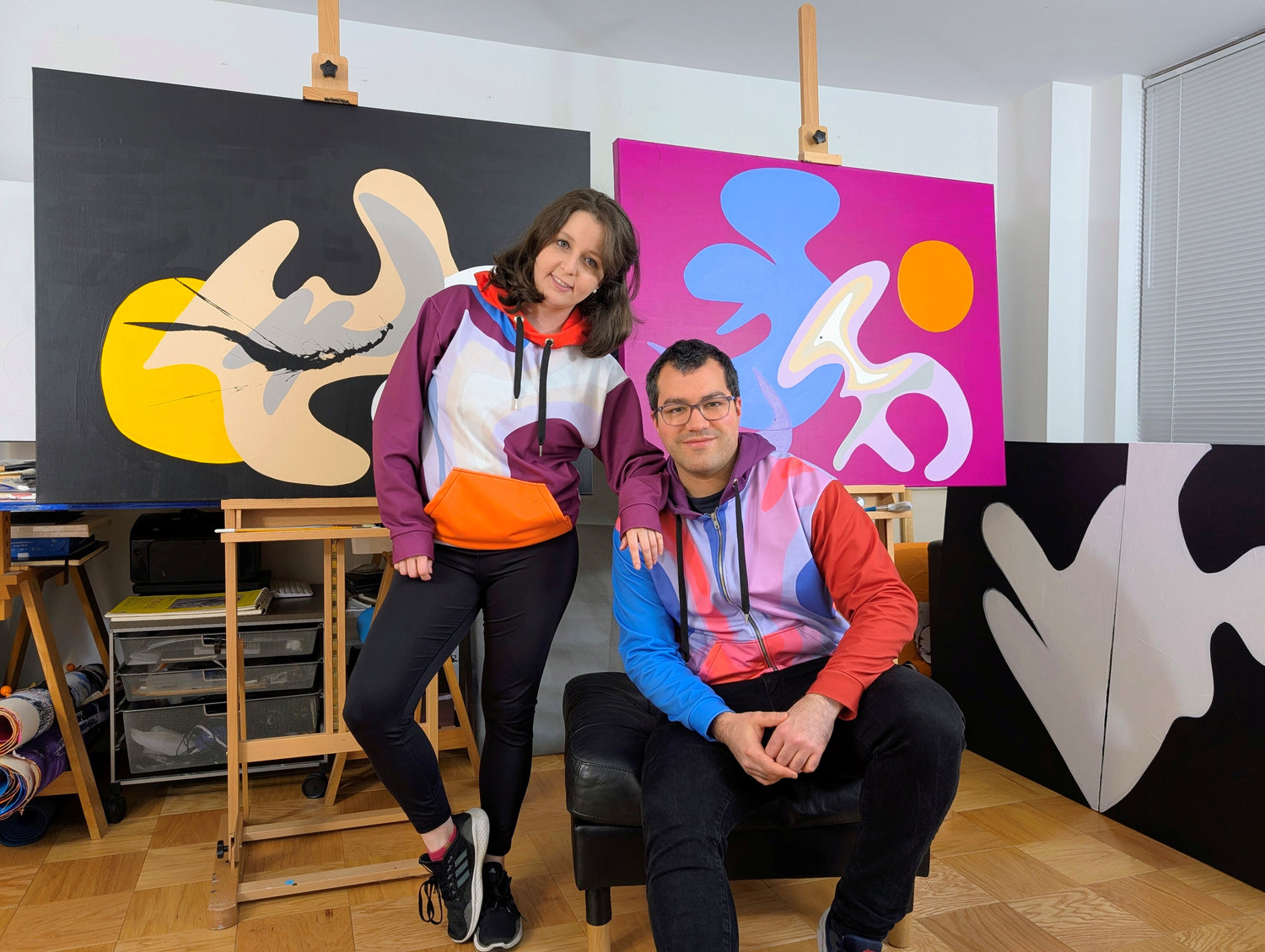 7C started in our studio. Paint, texture, quick decisions, and the kind of work that reveals itself through movement and revision. We are Mariana and Juan Luis, artists who have spent more than a decade building our practice in New York.